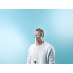 The unique compact seal sits comfortably under the nose to create a gentle fit, while the flexible breathing tube keeps the mask in place.